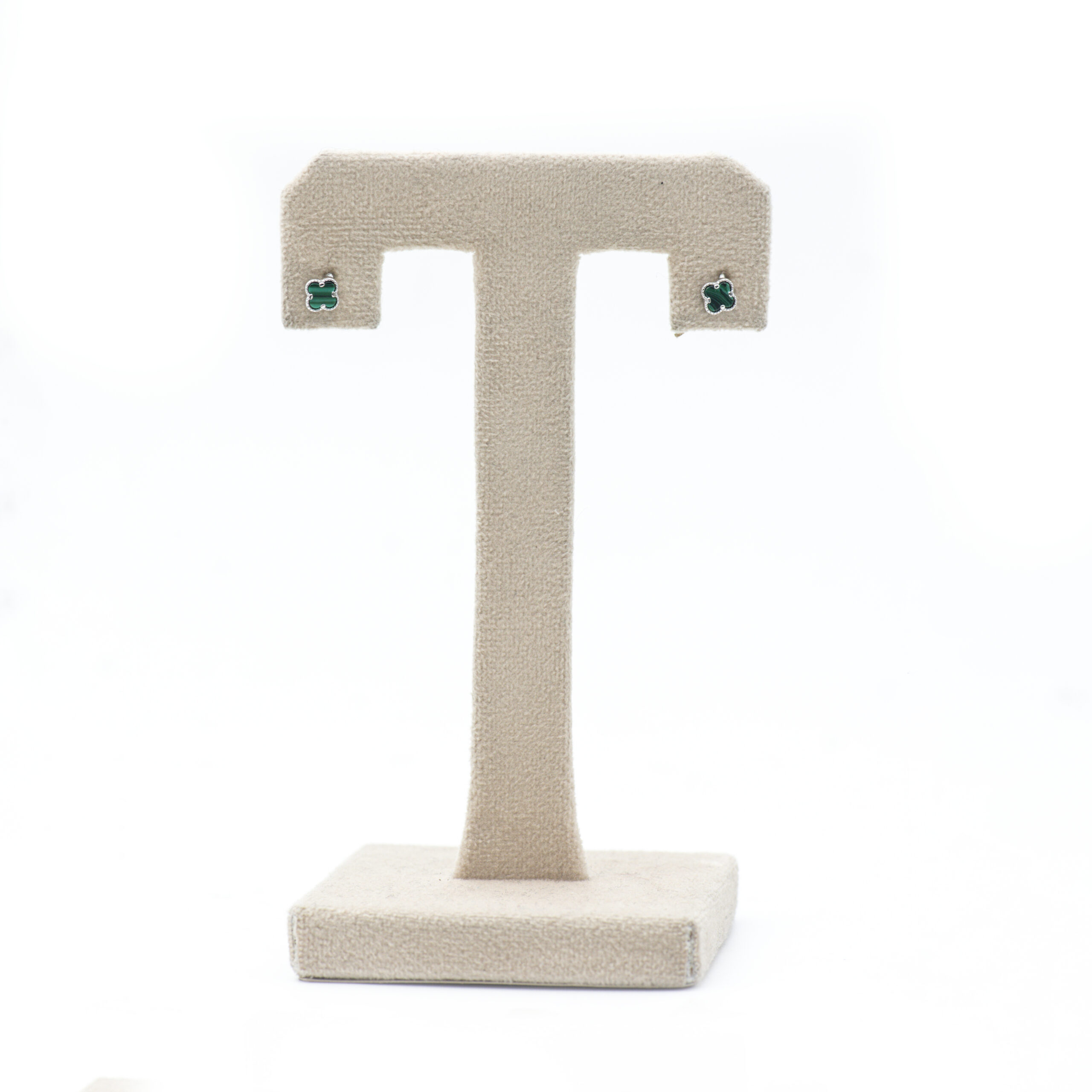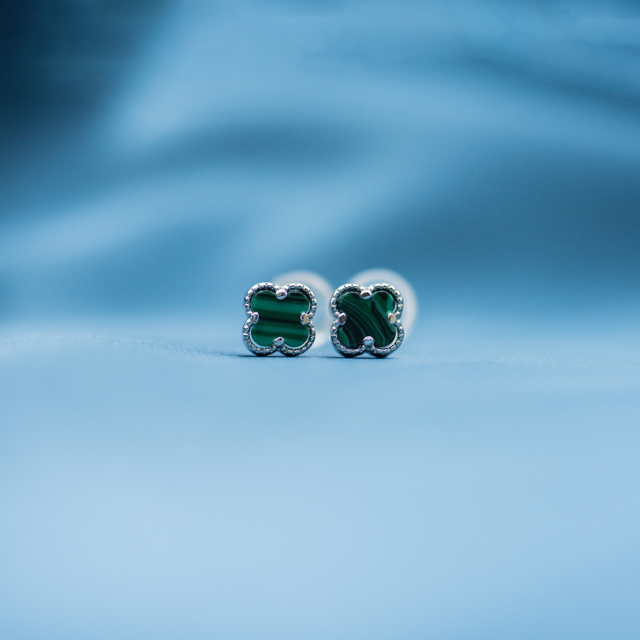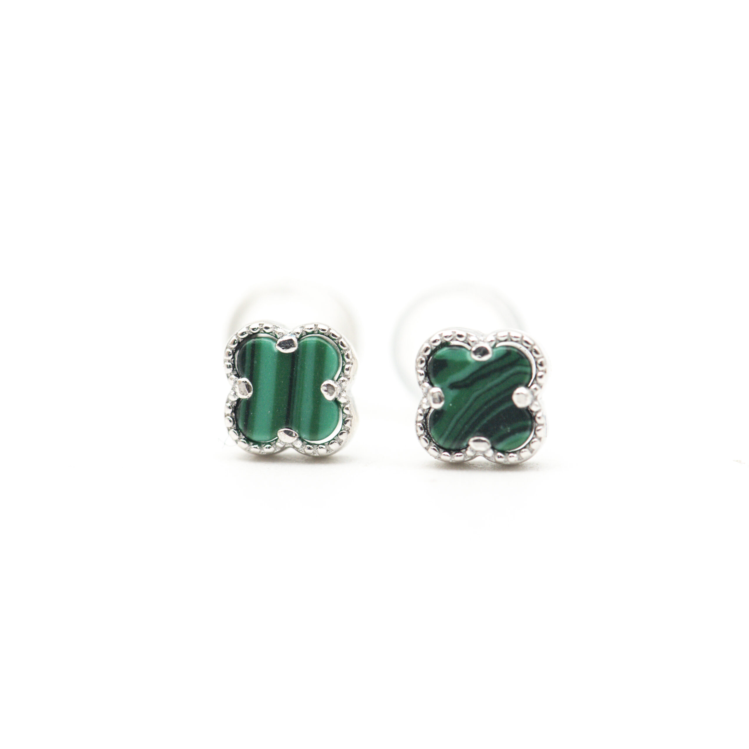 Inspired by timeless elegance — silver earrings featuring rich green onyx in a delicate clover design.